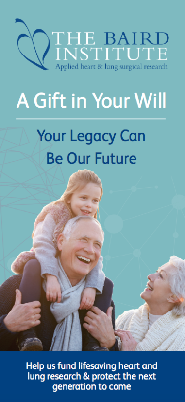 A gift left to The Baird Institute in your Will means we can continue to foster, fund and promote cardiothoracic research . This in turn will lead to greater public health benefits for the whole community and in addition will help to secure the future for people living with heart and lung disease.