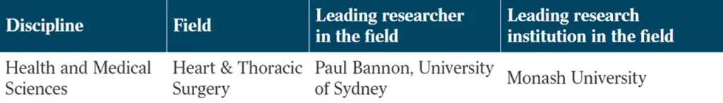 The Australian newspaper’s 2026 Research Magazine, which identifies Australia’s top 250 researchers, has named Professor Paul Bannon, Chair of The Baird Institute, the leading Australian researcher in the field of Heart and Thoracic Surgery. To determine the Top 250 research leaders, the magazine assigns each researcher an impact score based on research output across 250 fields. The score reflects quality (papers published in the top journals), impact (citations over the past five years), and volume (sustained output meeting quality and impact standards). All data is drawn from publicly available Google Scholar records. Professor Bannon was also named the top research leader in Cardiology in 2021 in The Australian’s Research Magazine.